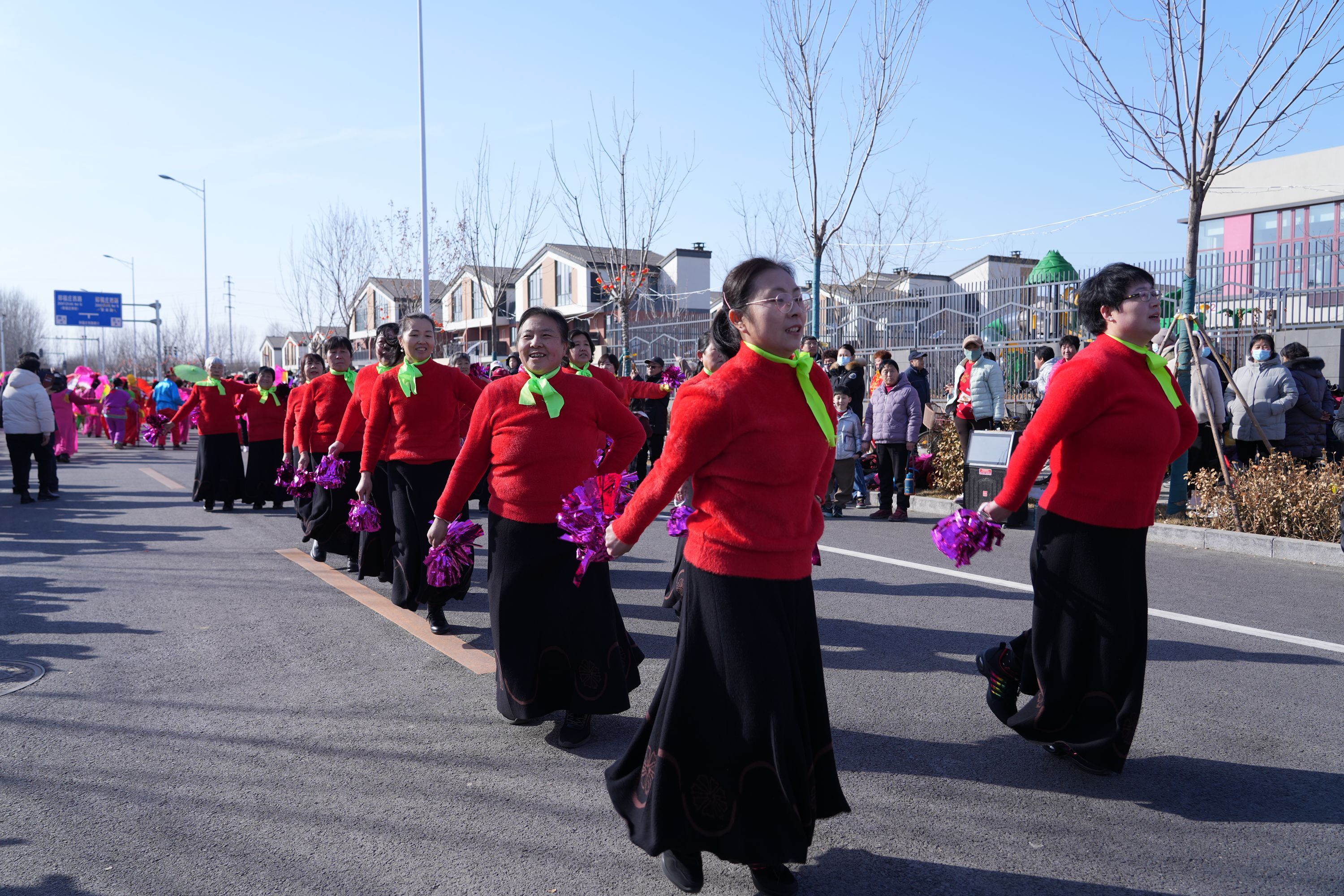 新京报讯(记者耿子叶)2月24日,大兴区安定镇“福满京城 春贺神州”——2024年元宵节群众性文化活动,在沙河村女子大鼓队的威风大鼓声中热闹开场。今年的花会展演,不少文化队伍把地点选择在了新居御林西苑。今年是村民在御林西苑度过的第一个元宵佳节,在古朴的独立式住宅旁、在宽敞的道路上,村民们火热开演。