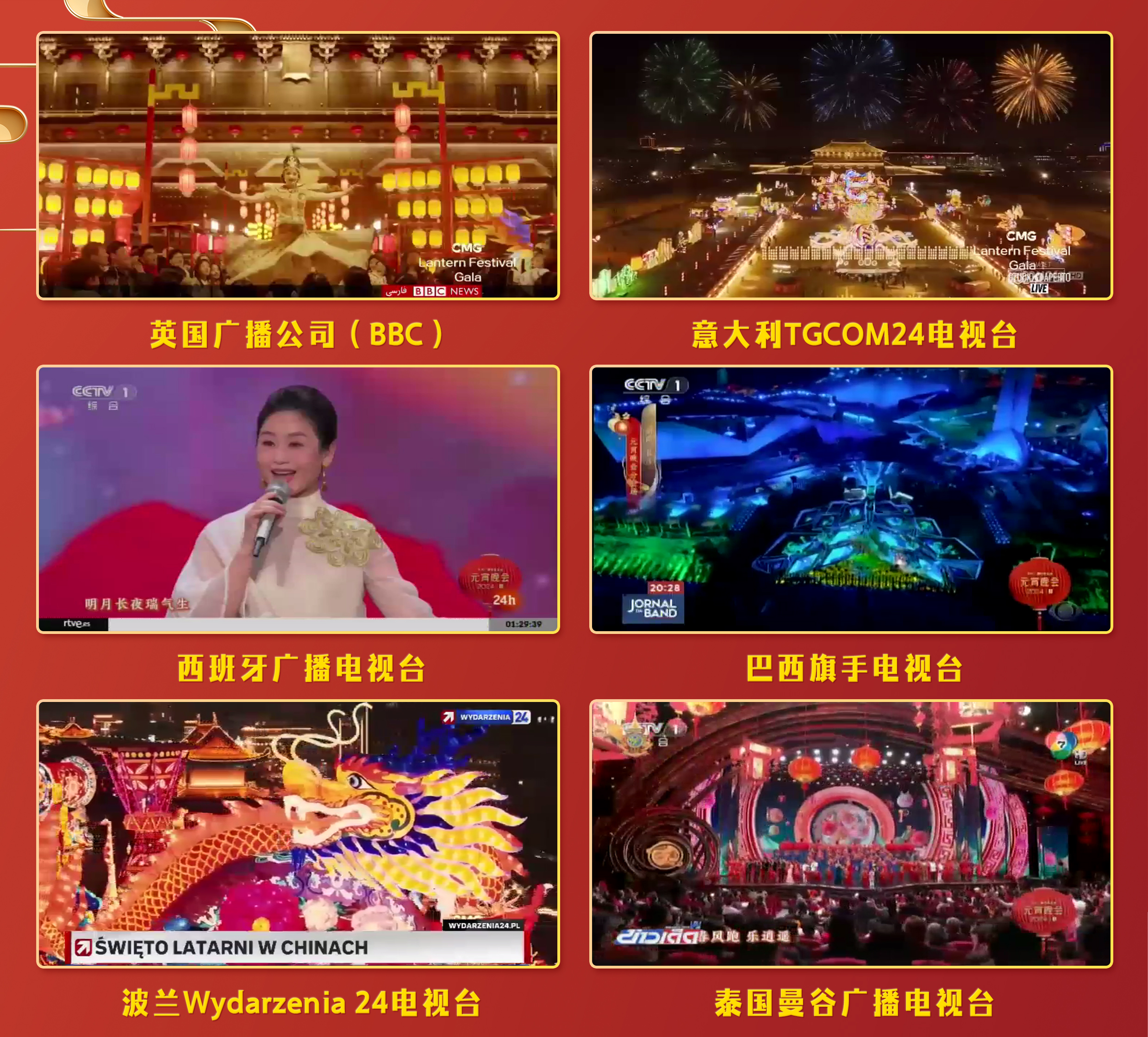 总台国际视频通讯社向全球媒体推送元宵晚会18条精品节目和报道、80篇多语种稿件等,被英国广播公司(BBC)、意大利广播电视公司、全俄国家电视广播公司、西班牙广播电视台、巴西旗手电视台等13个国家和地区的18个电视台及其新媒体平台播发。CGTN(中国国际电视台)68种语言发布元宵晚会相关报道1210条,获全球阅读量1.7亿。《2024年元宵晚会:流光溢彩元宵夜》等多语种特稿获圣彼得堡调频台网站、意大利埃瑞亚通讯社网站、罗马之声电台、米兰广播新闻台、哈萨克斯坦《实业报》网站、斯里兰卡ITN国家电视台、泰国第5电视台、巴西《伯南布哥日报》等多家海外主流媒体转载转引。央视网海外社交媒体面向全球受众同步播出元宵晚会,直点播观看总人次2885万次,比去年增长了27%。