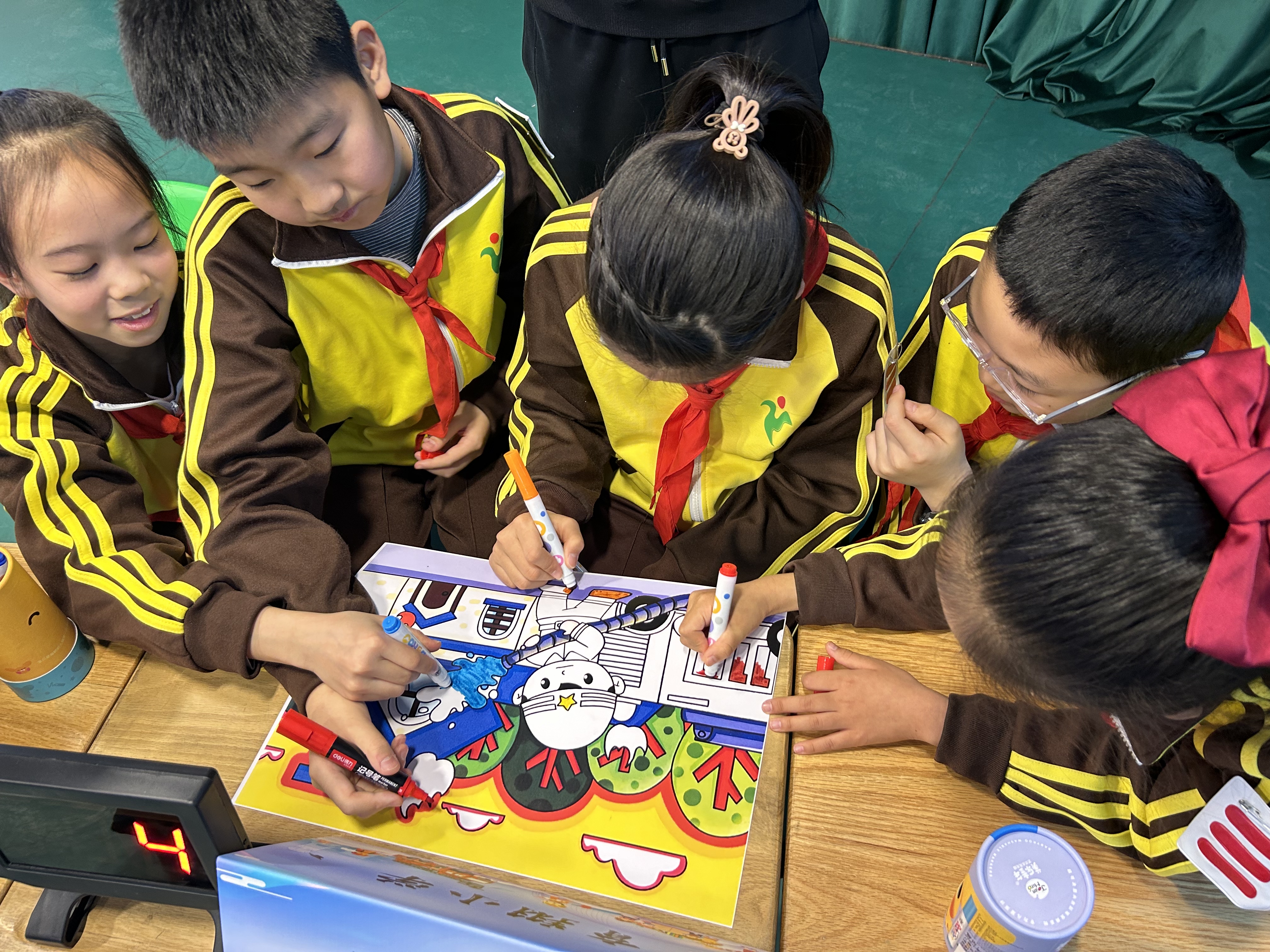 新京报记者从现场了解到,该比赛由育翔小学、北京第二实验小学、五路通小学、三帆中学附属小学四所西城区的小学参加,以校为单位组成参赛小组,每组6人。该比赛有西城区小学生、家长到现场观摩,共计150人左右。