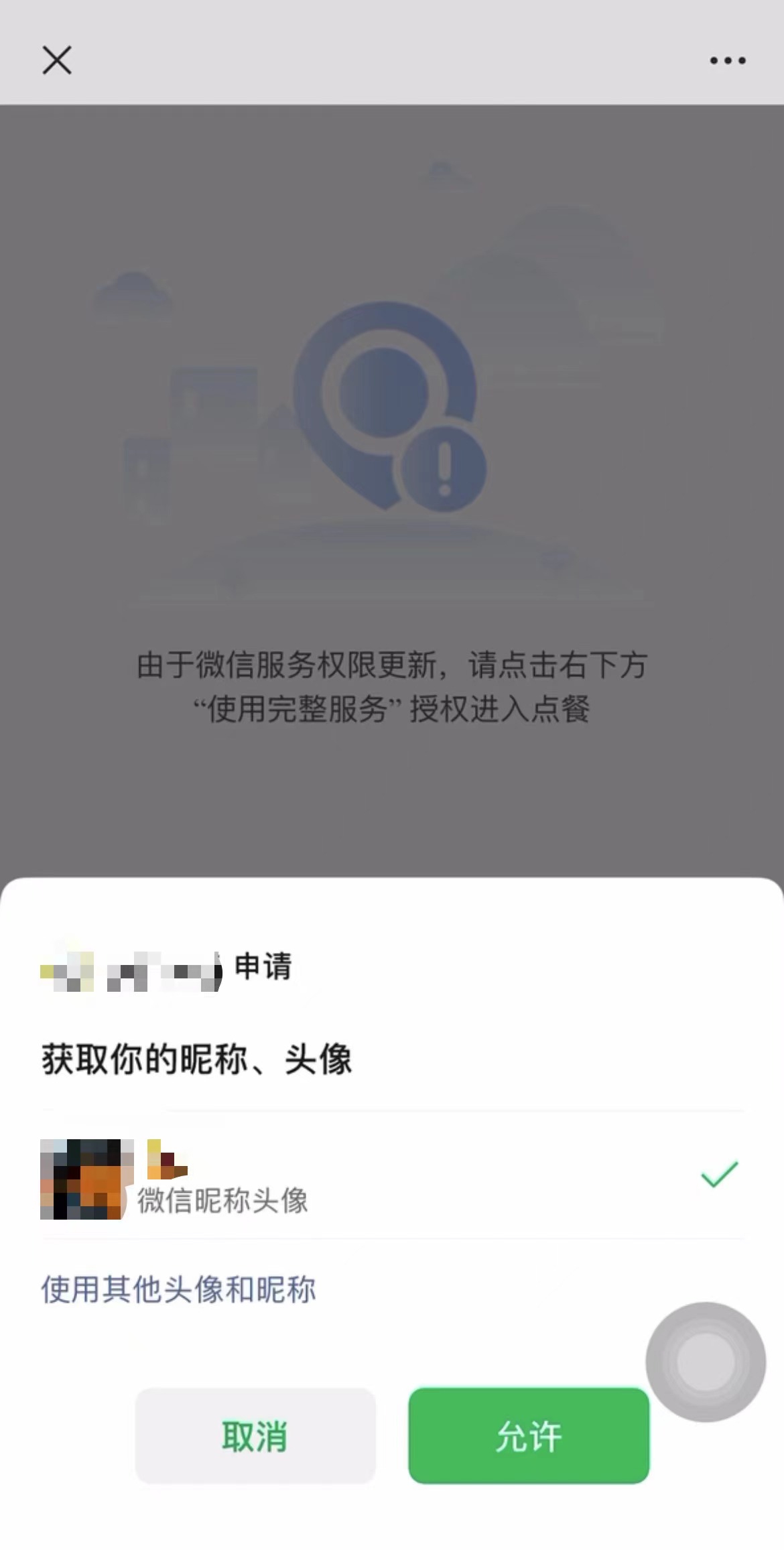 记者扫描一家粤菜馆的点餐二维码看到,需要授权小程序微信昵称、头像才能享受点餐服务;在一家泰餐店,扫描点餐二维码后,小程序蹦出“温馨提示”,但未显示具体内容,只有选择同意才能进入点餐界面。