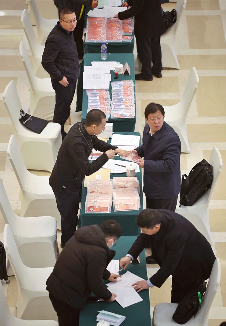 全国政协十四届二次会议将于3月4日下午3时在人民大会堂开幕,会期6天。3月3日,在全国政协十四届二次会议各委员驻地,全国政协委员们陆续报到。图为3月3日,北京会议中心,全国政协委员许亚南报到。