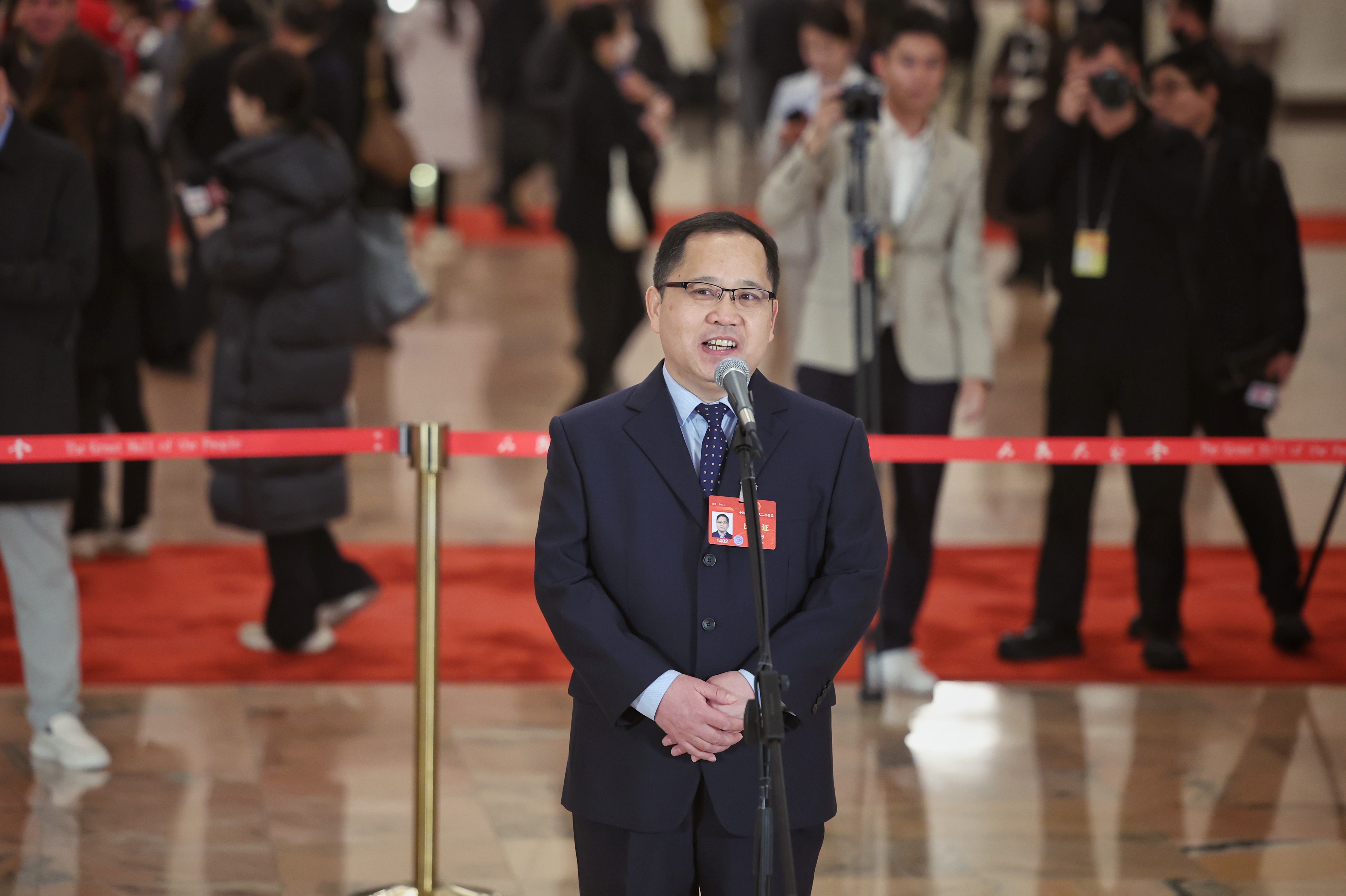 3月5日,第十四届全国人民代表大会第二次会议首场“代表通道”集中采访活动在北京人民大会堂举行。 新京报记者 薛珺 摄