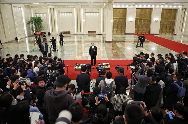 3月5日,第十四届全国人民代表大会第二次会议首场“部长通道”集中采访活动在北京人民大会堂举行。 新京报记者 薛珺 摄