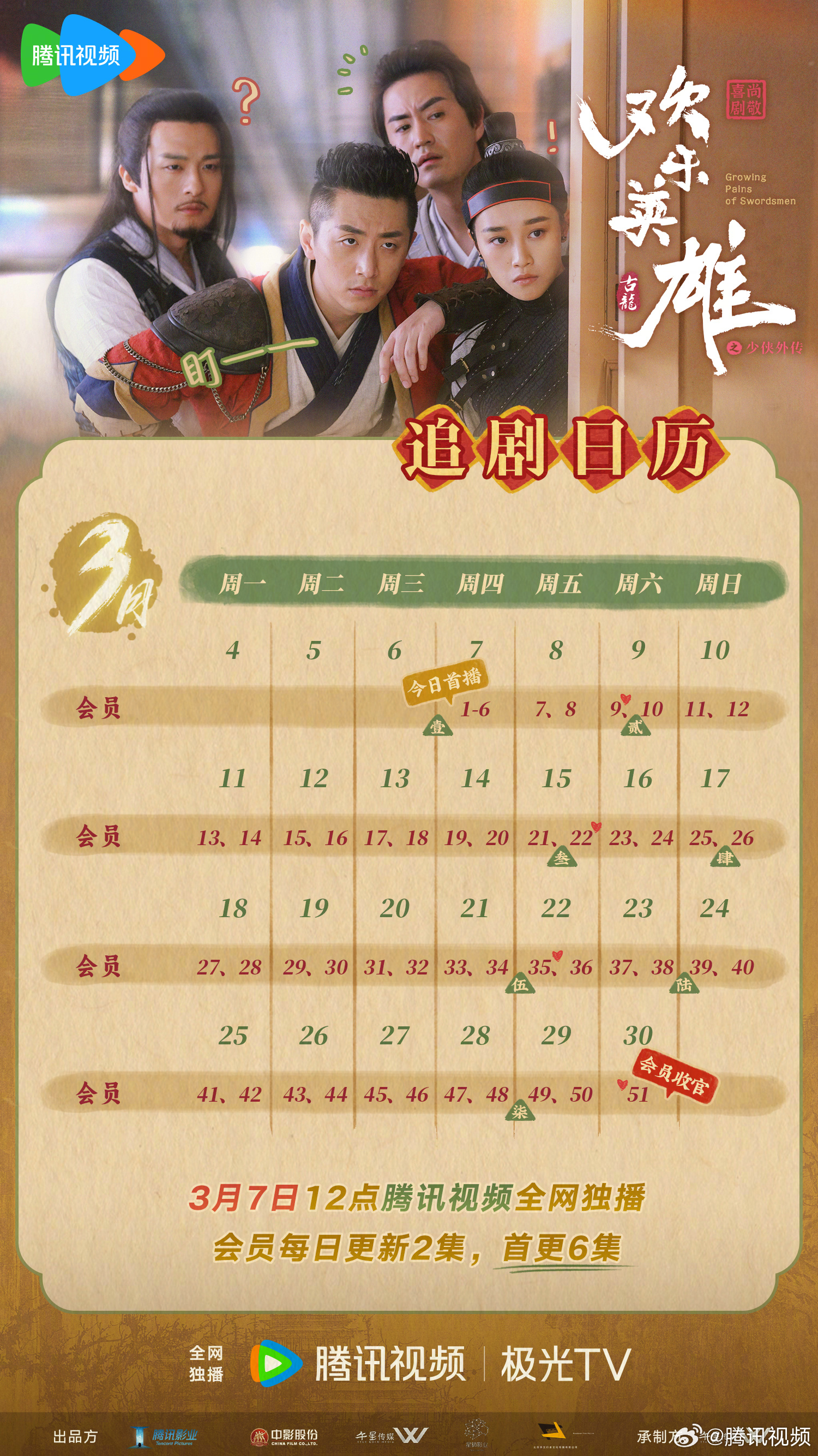 古装武侠喜剧《欢乐英雄》3月7日开播,发布追剧日历