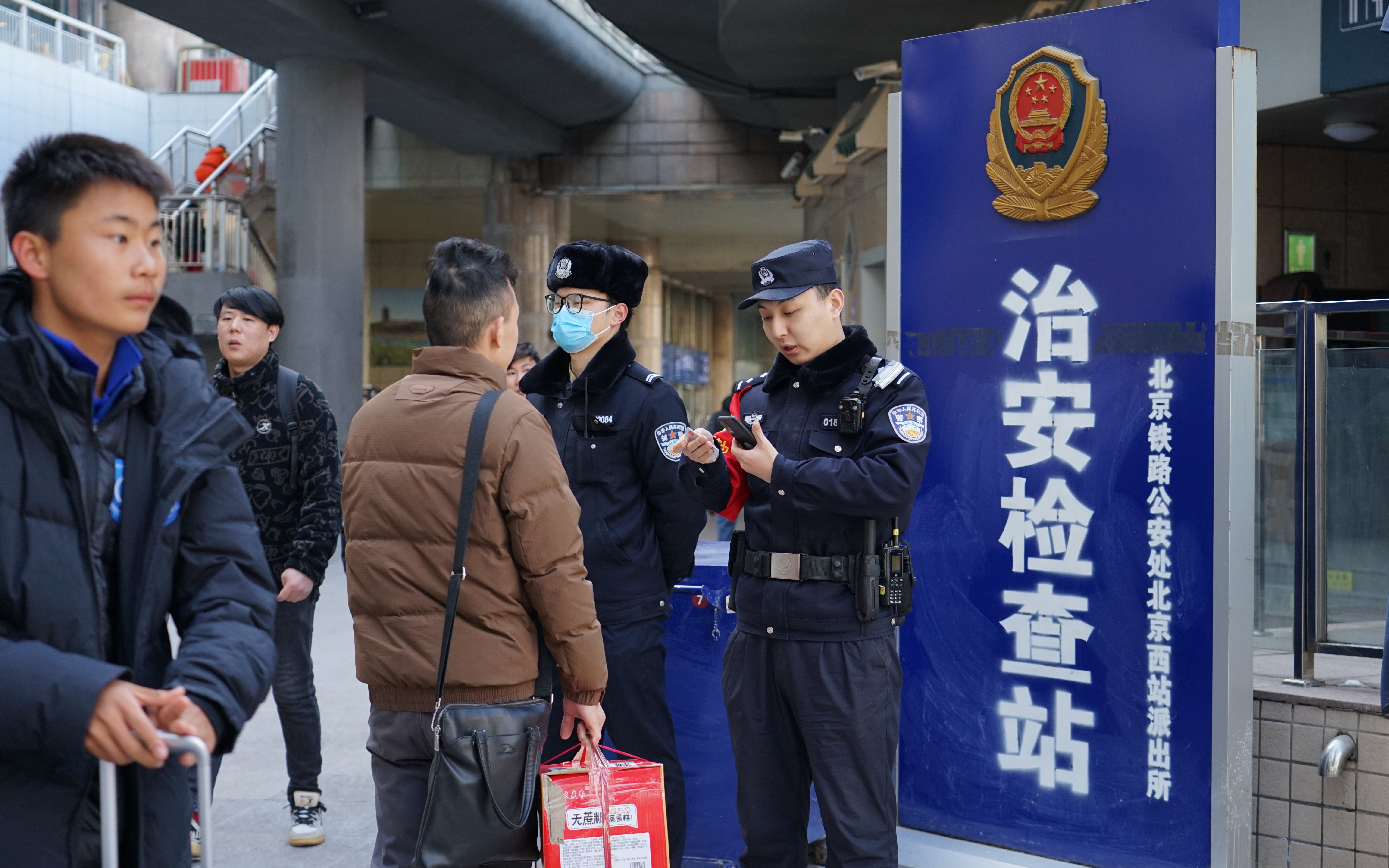 2024年春运期间,北京铁警正在执勤。图源:北京铁路公安处
