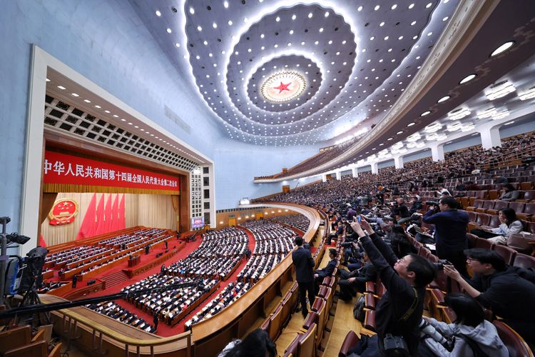 3月8日,十四届全国人大二次会议在北京人民大会堂举行第二次全体会议。