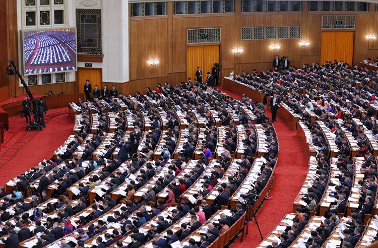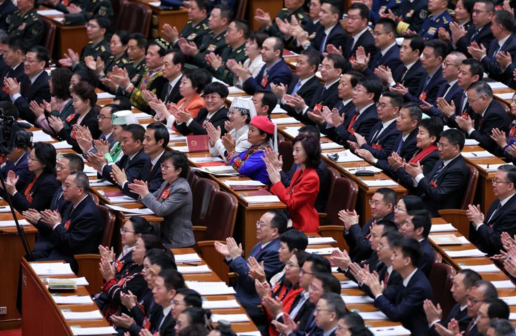 全国人大代表们鼓掌。