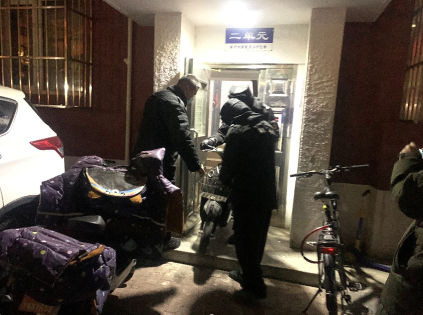 联合清查队工作人员从居民楼中清理电动自行车和电动三轮车。图源:海淀区消防救援支队