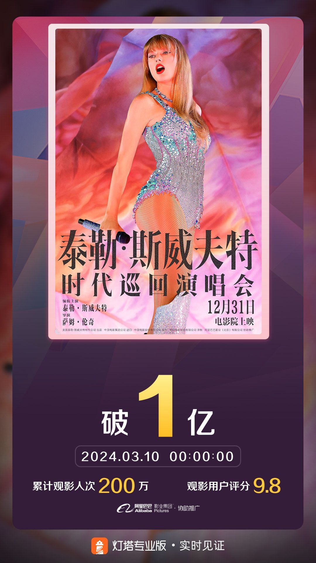 影片《泰勒·斯威夫特:时代巡回演唱会》票房破1亿元