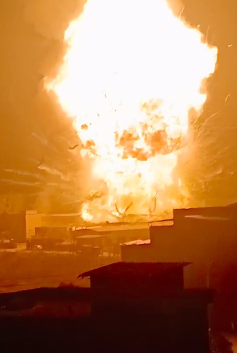 一段网络视频显示,事发现场大火不断燃烧,黑色浓烟升起,并发出巨响。一名目击者告诉新京报记者,火灾发生时,她在事发地附近的饭店吃饭,“突然天空闪了一下。”不远处的天被火光映得发红,现场传出爆炸声,“响了两三次。”