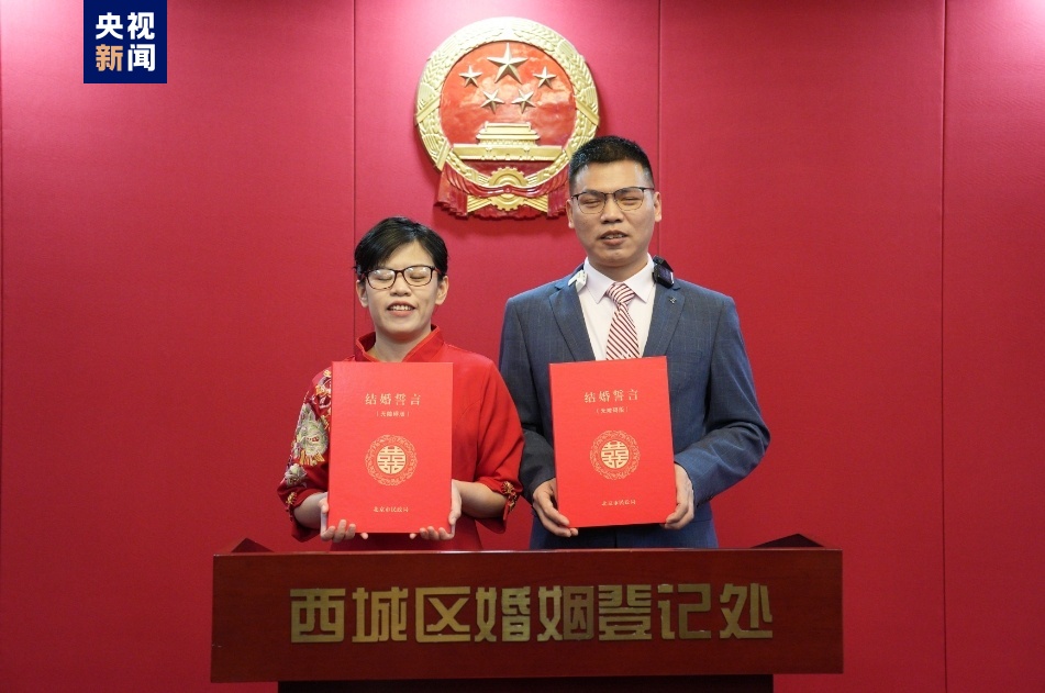 据央视新闻客户端消息,3月12日,张女士和王先生携手走进北京市西城区民政局婚姻登记服务中心,全程无障碍办理了结婚登记手续。张女士为视力残疾一级,王先生为视力残疾二级,他们只能摸读盲文或者阅读大号文字。北京市西城区民政局婚姻登记服务中心得知两位新人的视力状况后,主动为两位新人设立绿色通道,并提供盲文版、大字版结婚登记告知单、结婚誓言。据悉,这是北京市西城区民政局婚姻登记服务中心第一次为视障人士提供盲文版、大字版无障碍格式结婚登记制式文件,也是全国首次为视障人士提供无障碍格式版结婚登记告知单、结婚誓言。