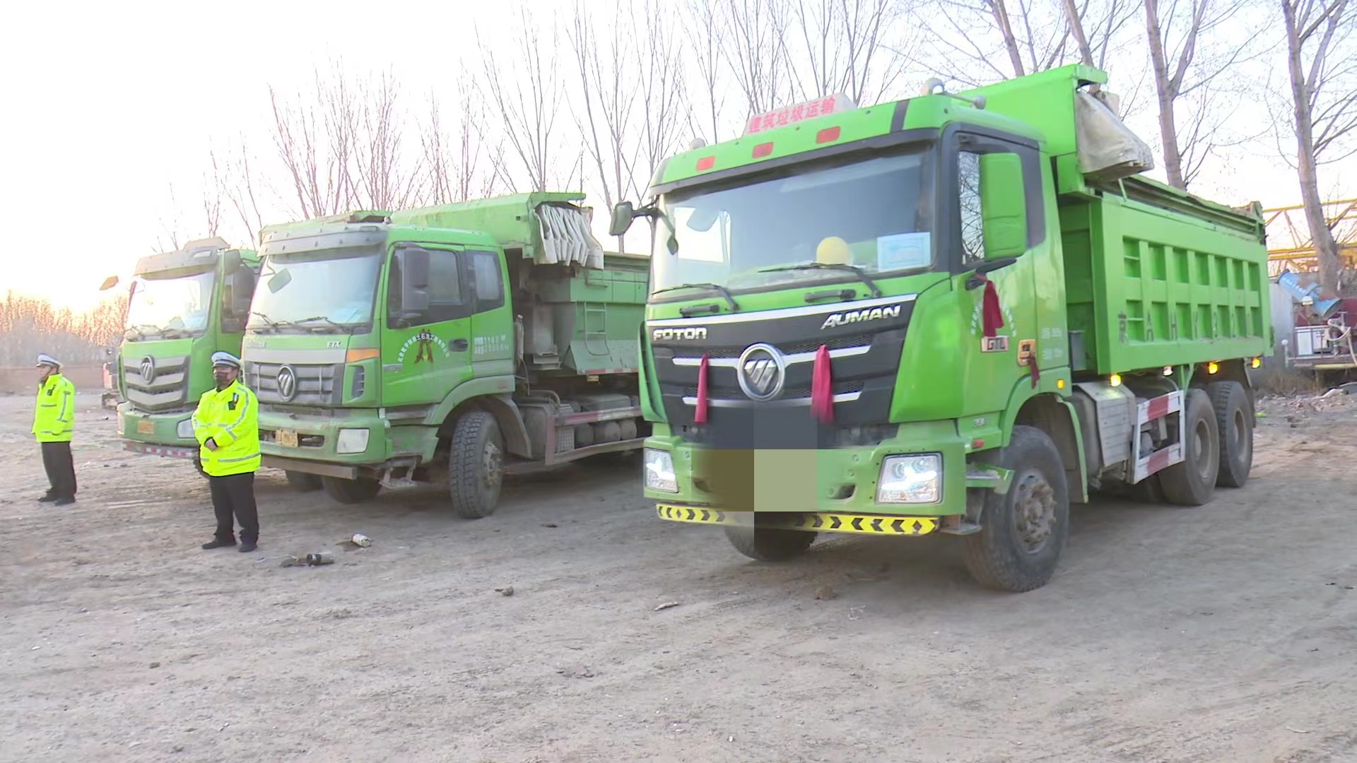 房山交通支队查获的多辆违法渣土车。北京交警供图