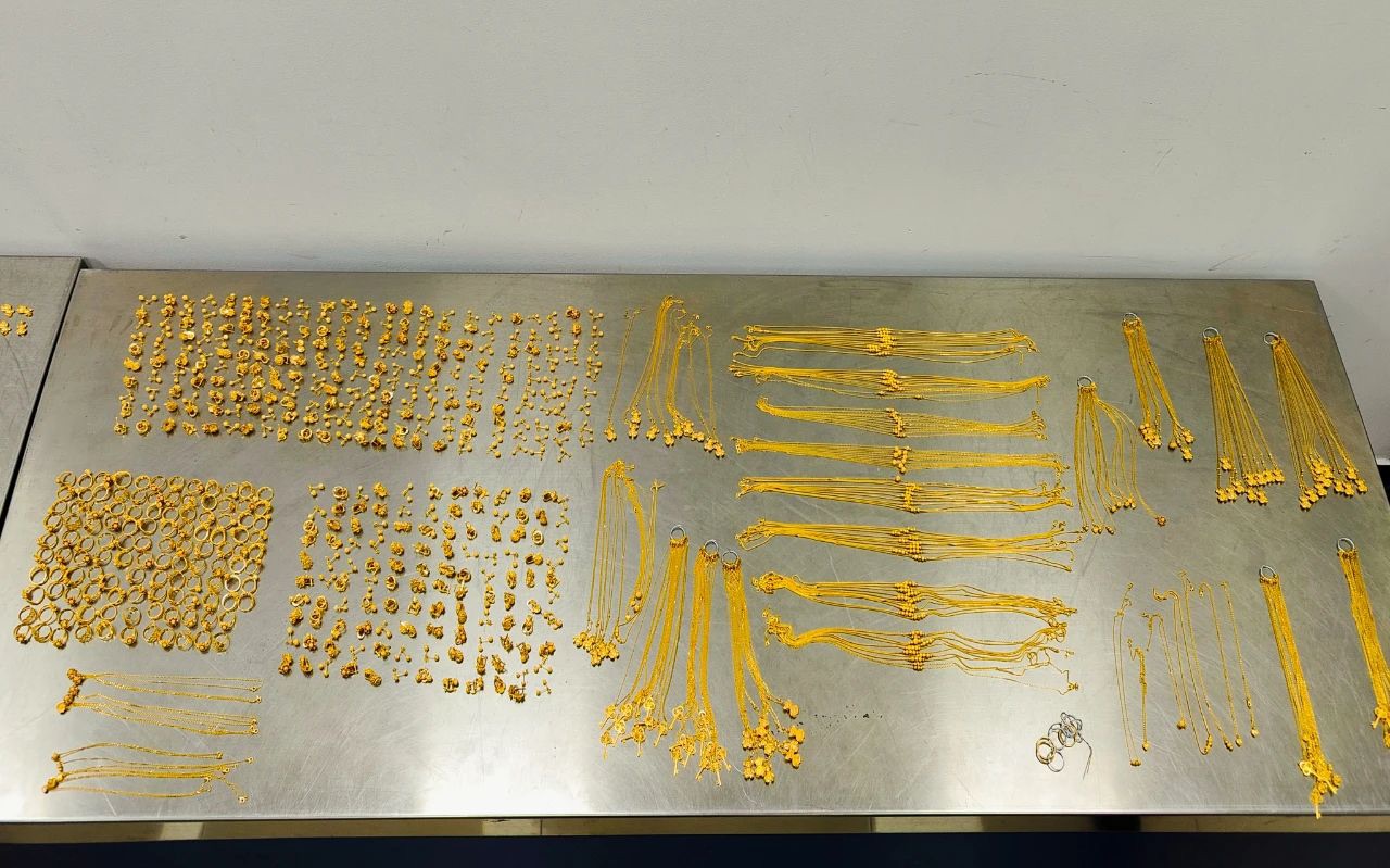 首都机场海关查获旅客违规携带黄金首饰699件海关提醒:根据《中华人民共和国海关行政处罚实施条例》第七条,以藏匿、伪装、瞒报、伪报或者其他方式逃避海关监管,运输、携带、邮寄国家禁止或者限制进出境的货物、物品或者依法应当缴纳税款的货物、物品进出境的是走私行为,将被追究法律责任。