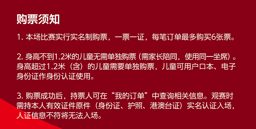 国足3月26日主场与新加坡比赛将于3月15日17时在多个平台开启售票,球票共设五个档位,为160元、210元、360元、460元及680元。本场比赛为实名购票,一票一证,每笔订单最多购买6张球票。