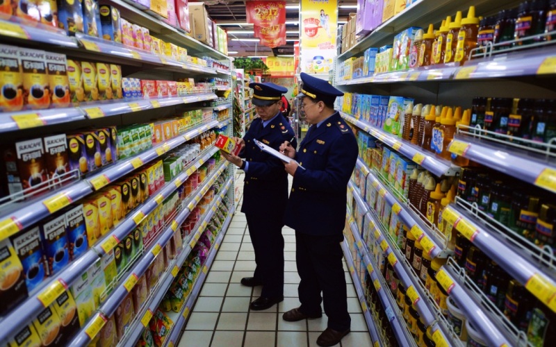 ▲资料图:廊坊固安县工商局的工作人员在一家商场的食品区进行检查。图/新华社