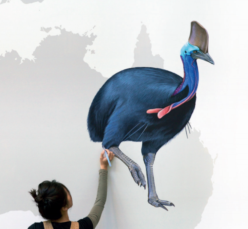 澳大利亚灰色园丁鸟用木棍编织巢穴,再想方设法以各种装饰物和卵石来铺设地板,建造巢穴。