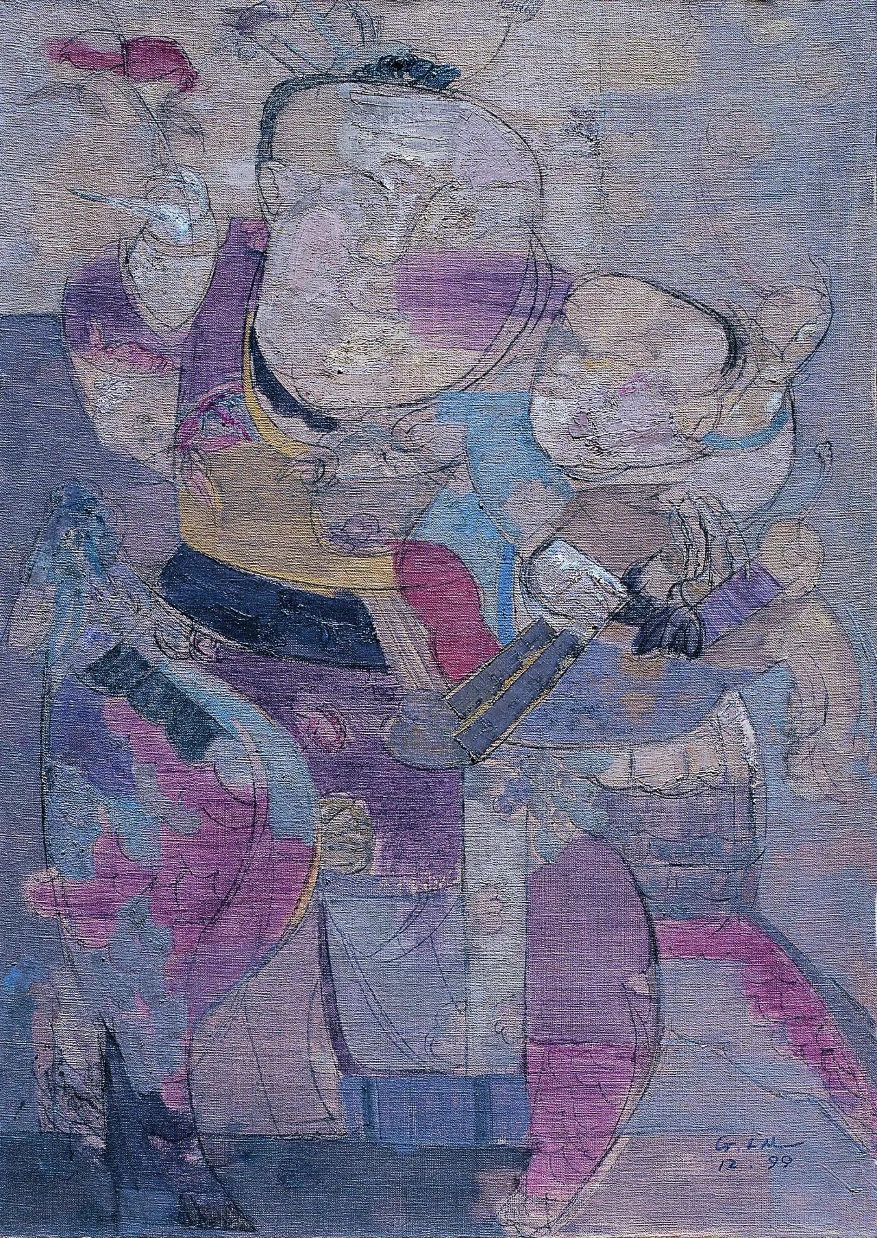 《麒麟送子 - 线版·蓝色版》1999 / 116×80cm / 布面油彩。