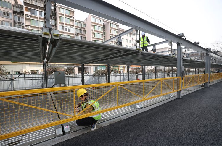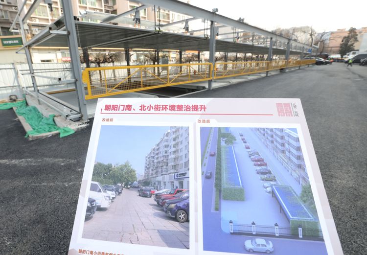 3月21日,北京朝阳门南小街东侧大方家胡同内,一座立体停车场正在建设。经过“立体化”改造,原平面停车场升级为三层立体停车结构,总停车位数量提升至100余个。