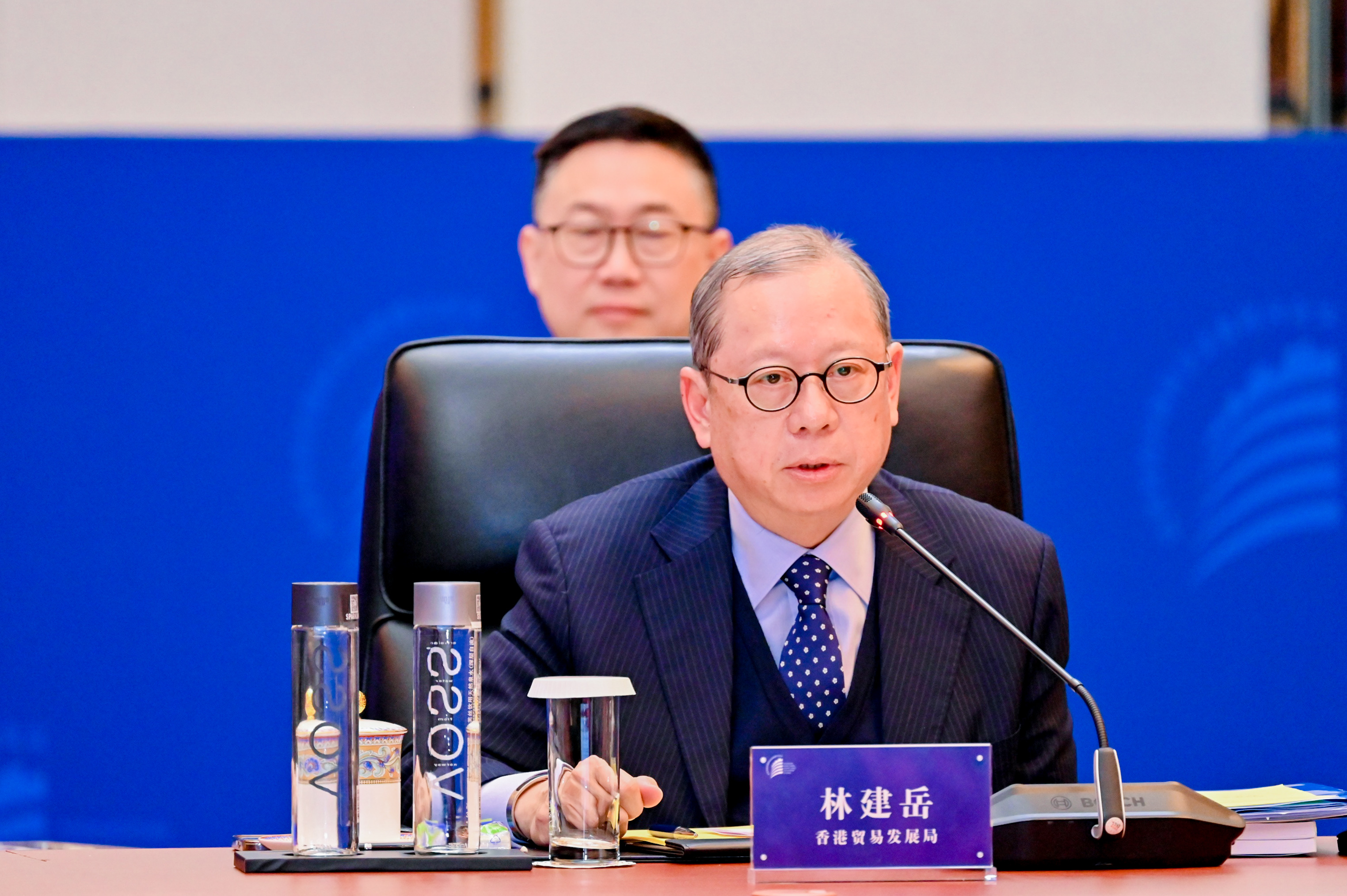 新京报讯(记者陈琳)3月22日,第十六届北京市市长国际企业家顾问圆桌会议在怀柔雁栖湖国际会都举办。来自全球16家跨国企业的掌舵人与市政府领导面对面交流。香港贸易发展局主席林建岳在分享中表示,建议北京借助示范区2.0方案契机,鼓励已经“在京”企业,包括1.8万家港商,参与北京的高质量发展,“进一步拓展业务范围,参与新经济新赛道,让他们投资北京再出发。”