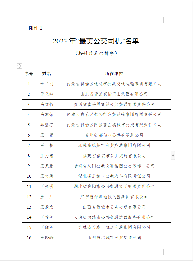 附:2023年“最美公交司机”“十大最美公交司机”以及推选宣传活动优秀组织单位名单