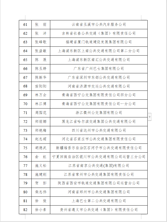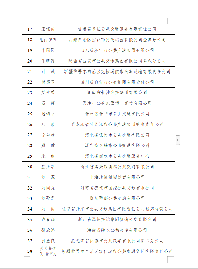 两部门联合发布“最美公交司机”和“十大最美公交司机”名单