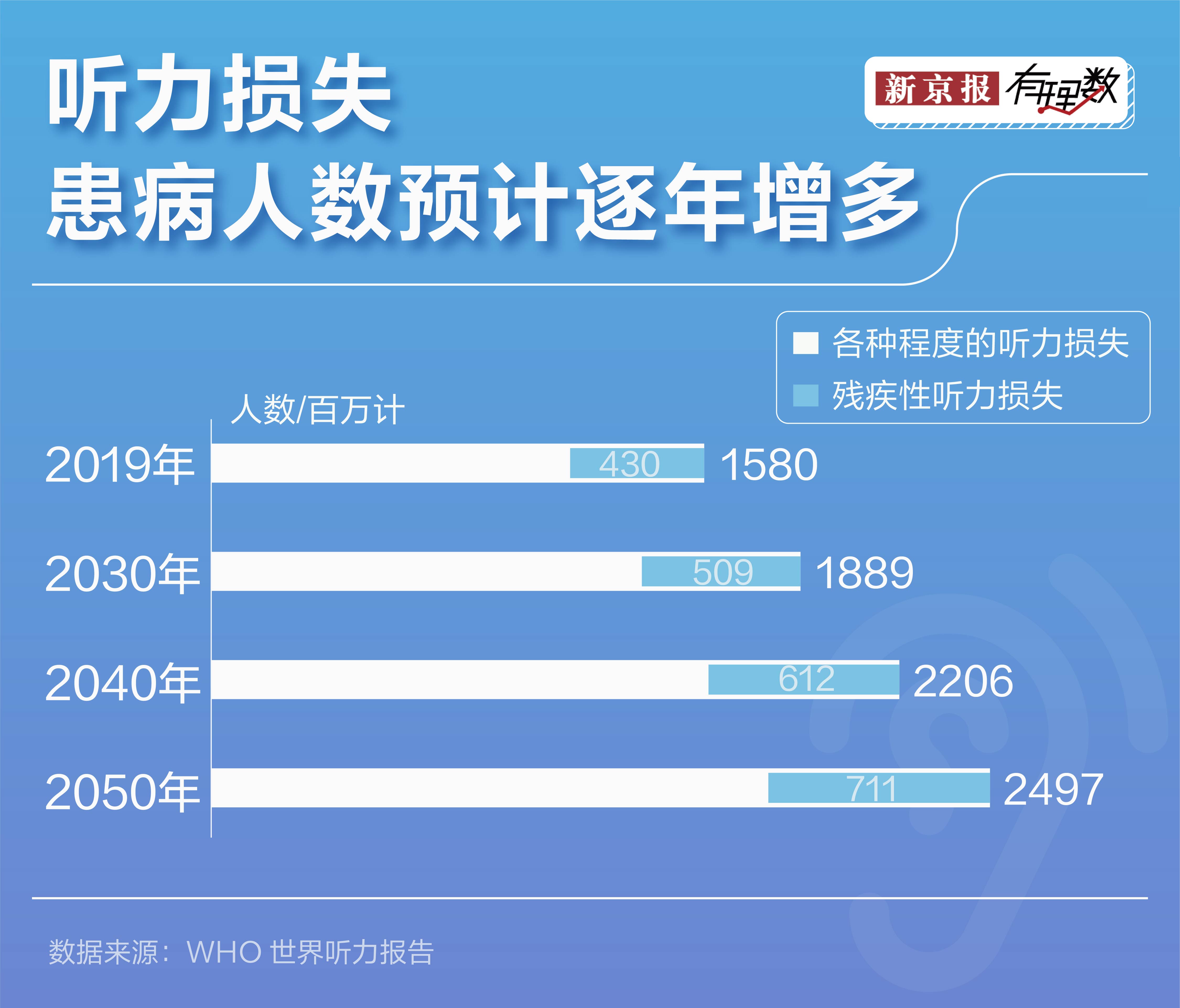 世界卫生组织预估,到2050年,全球将有近25亿人患有不同程度的听力损失,其中至少7亿人将需要康复服务。