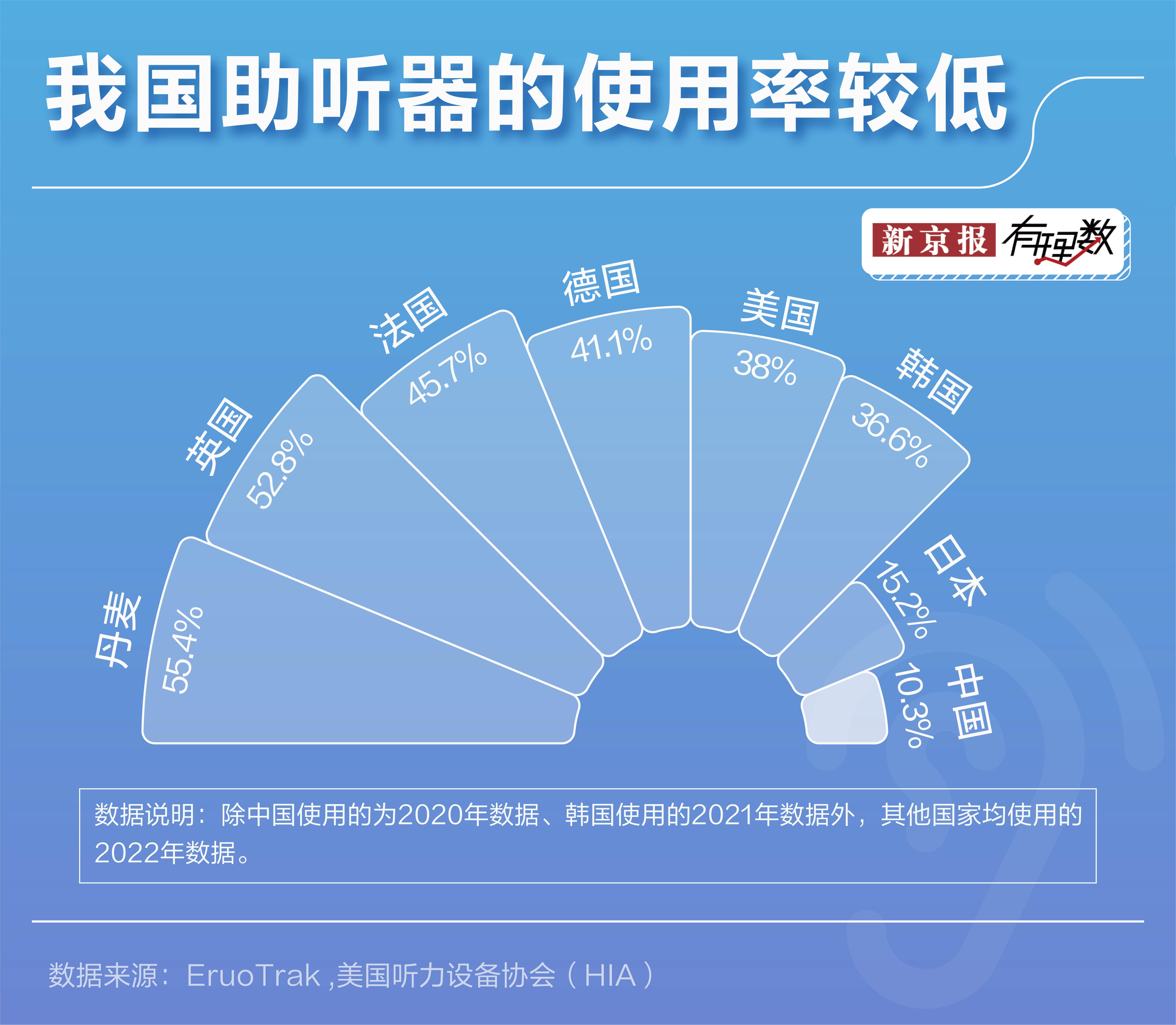 数据显示,截至2020年,我国助听器的使用率约为10.3%,远低于欧洲发达国家水平,亦低于韩国和日本的使用率水平。