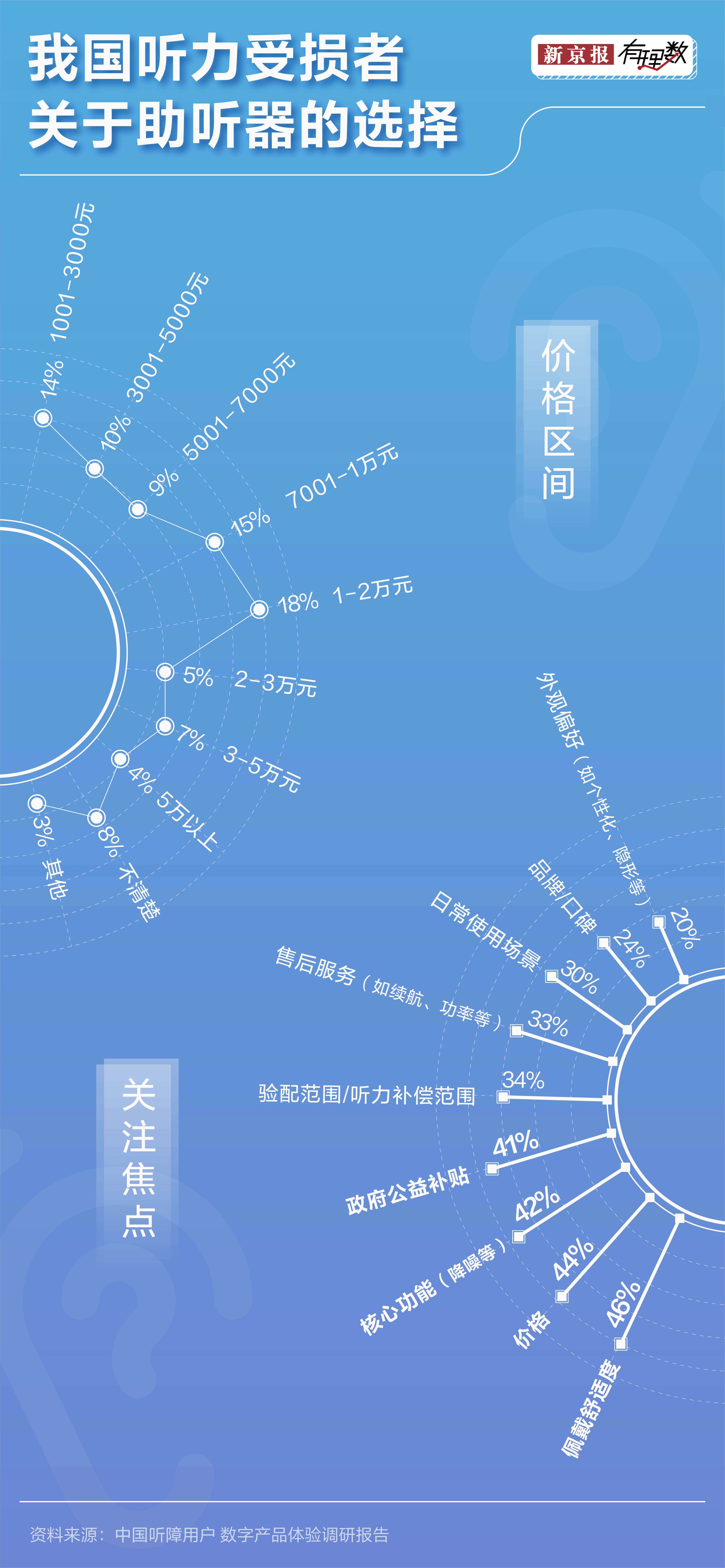 除了助听器的价格,产品质量、佩戴舒适度、核心功能(是否能降噪)以及政府公益补贴是用户选择助听器时关注的焦点。