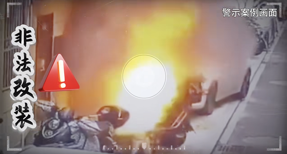 同时,警方提示,非法改装的电动自行车会存在超速行驶、危险难控、接线损伤、打火爆炸、短路自燃等安全隐患。非法改装电动车害人害己,请广大驾驶人一定要远离改装车。购买电动自行车时,应到正规销售点选购正规品牌。