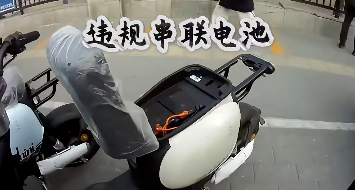 假冒伪劣电动自行车违规串联电池。 图源:北京市公安局朝阳分局