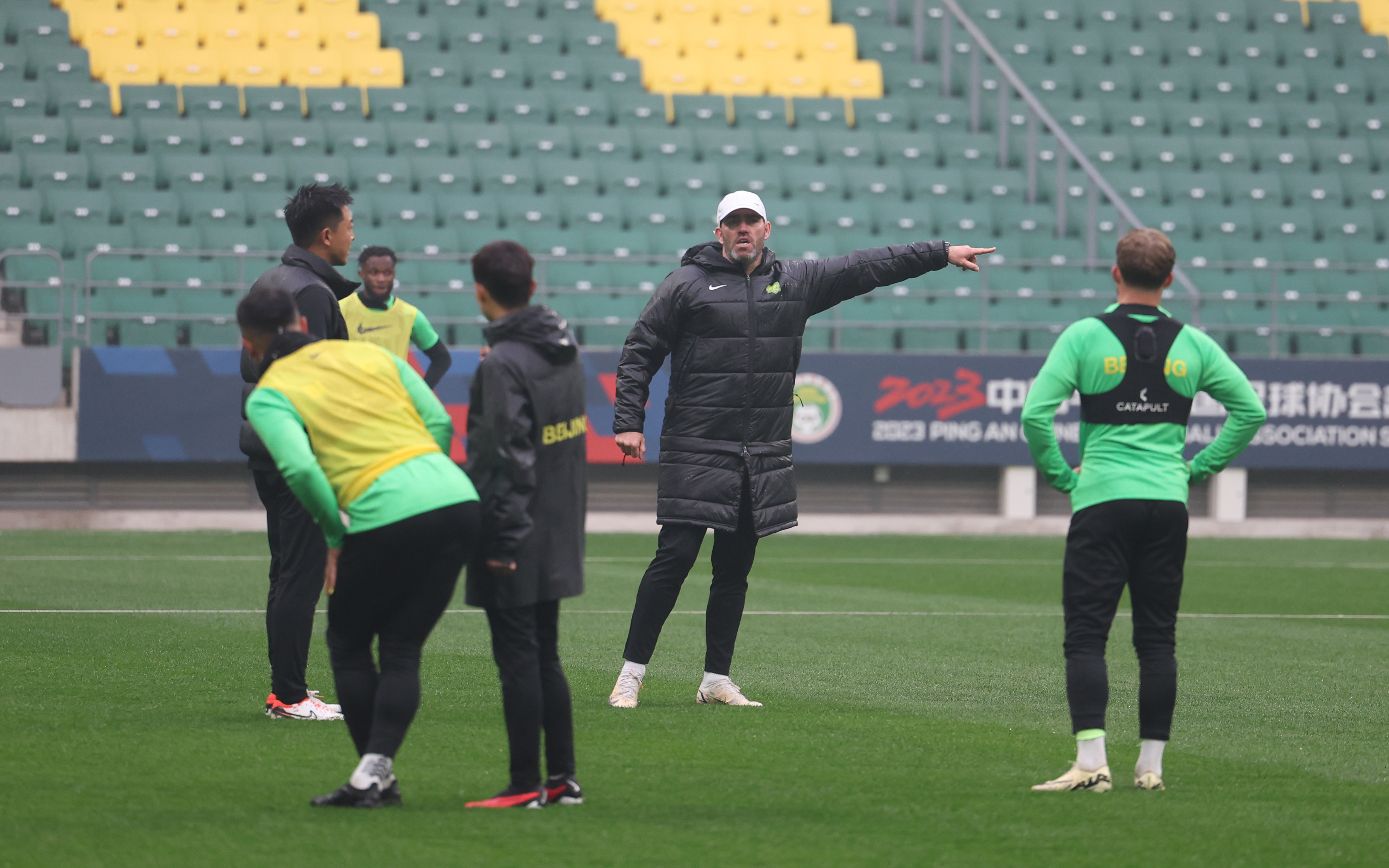 国安未来是否变阵,主帅里卡多(右二)要视情况而定。 新京报记者 王飞 摄
