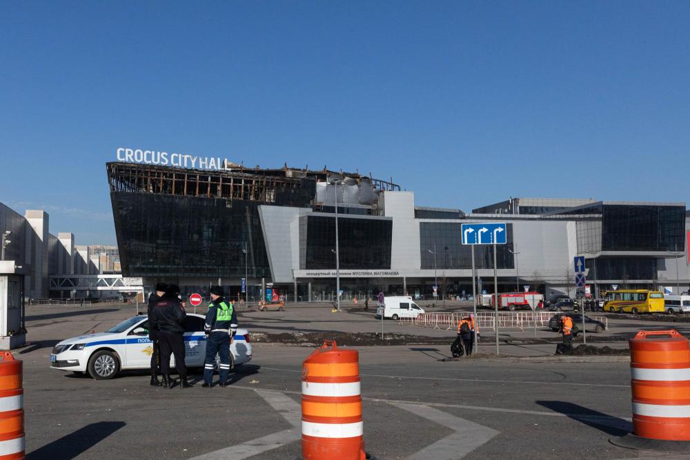 3月28日,警察在俄罗斯莫斯科近郊“克罗库斯城”音乐厅附近执勤。新华社记者白雪骐摄