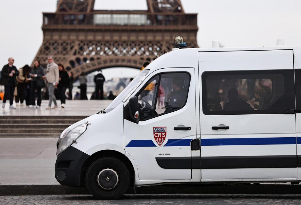 3月25日,法国警察在巴黎特罗卡德罗广场巡逻警戒。新华社记者高静摄