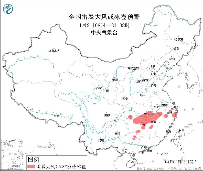 中央气象台今晨继续发布强对流天气黄色预警。其中,湖北、湖南、江西、浙江、广西局地将有8至10级雷暴大风或冰雹天气,局地风力可达11级以上,冰雹直径可达2厘米。