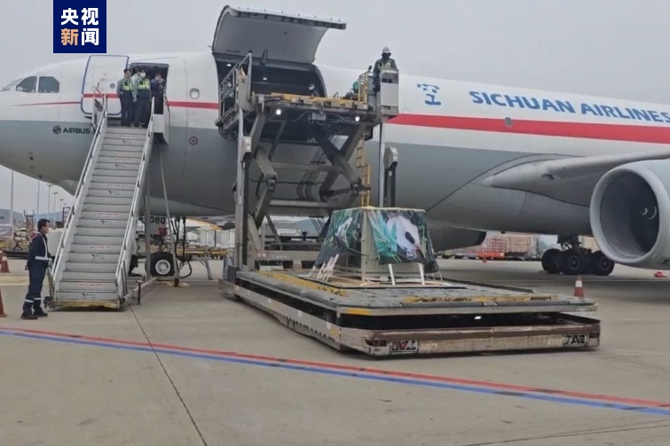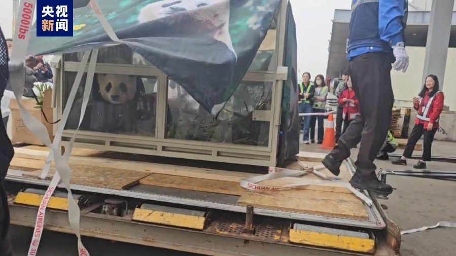 大熊猫“福宝”已登机 等待起飞回国