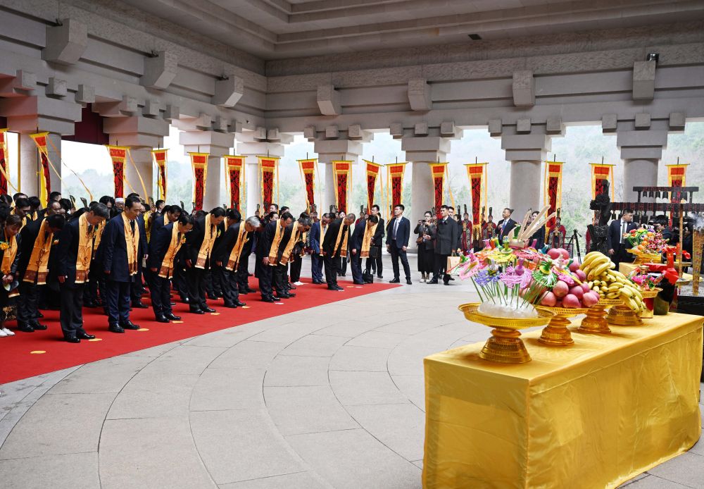 据新华社西安4月4日电 岁序甲辰,节届清明。4月4日,甲辰(2024)年清明公祭轩辕黄帝典礼在陕西省延安市黄陵县桥山祭祀广场举行。