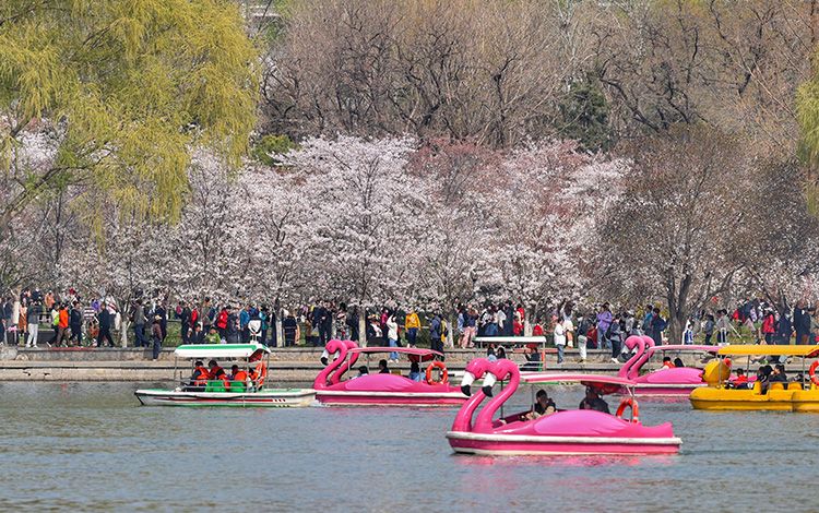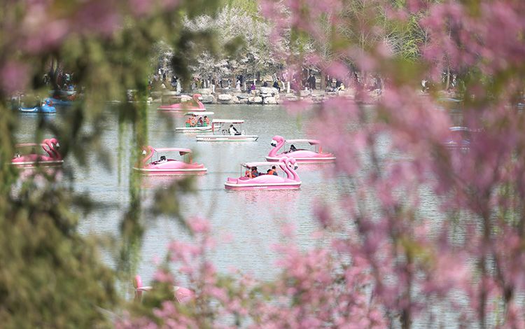 4月5日,北京处处皆是春意盎然,玉渊潭公园内游人如织。北京迎来清明小长假游园高峰。