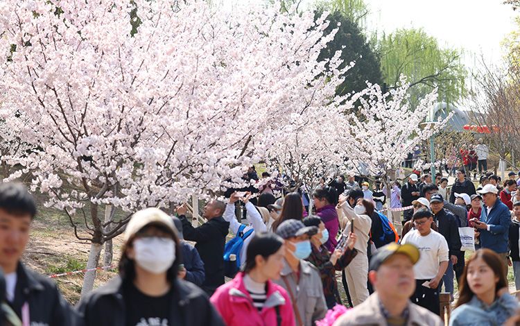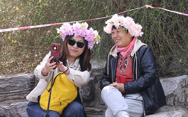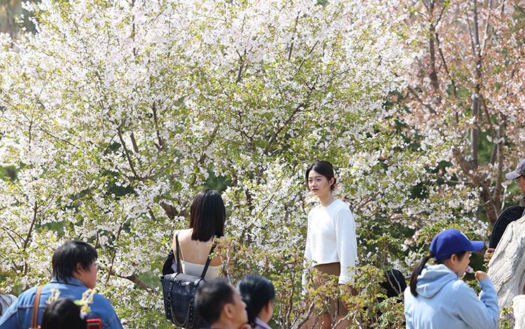游客在公园内赏花。据北京市公园管理中心数据,清明小长假首日,北京市属公园及中国园林博物馆累计接待游客56.7万人次。接待游客量排名前三位的市属公园是玉渊潭、颐和园、天坛。