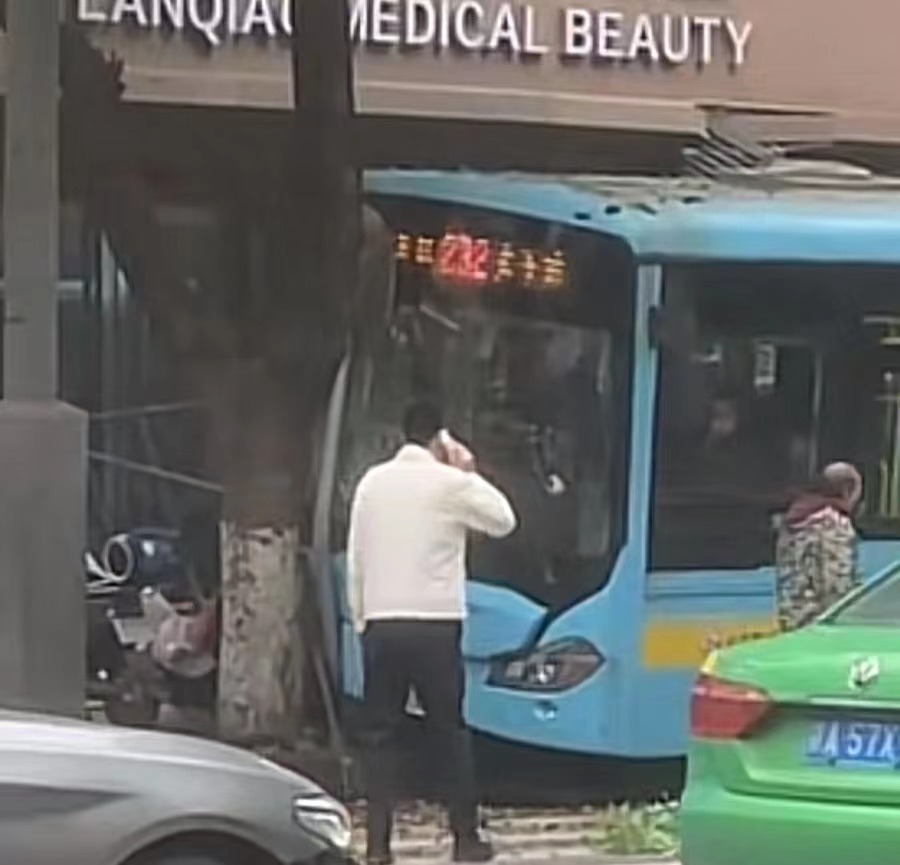 事发地对面一家商铺老板告诉新京报记者,事发时,她听到马路对面传来一声巨响,出门发现一辆公交车冲上人行道,车头受损严重,多人倒地,“还有一个被压在公交车底下,后来(救援人员)把公交车吊起来,人才被抬出来。”她注意到,事发后,公交车司机坐在驾驶座上,脸色发白,不断有乘客通过车窗爬出。