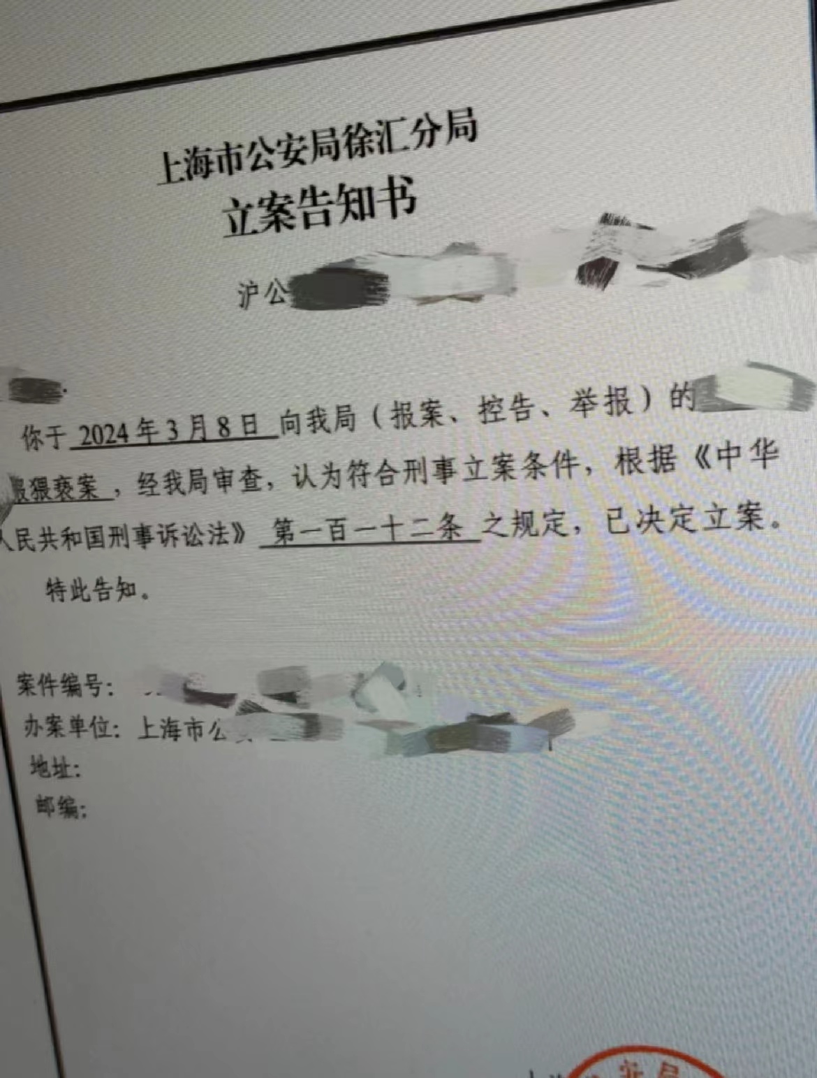 新京报讯(记者刘思维)近日,一名律所前女员工发帖称,自己半年前在一场聚餐中被上司猥亵,引发网络关注。新京报记者从当事人王米(化名)处获得的《立案告知书》显示,4月8日上海市公安局徐汇分局决定对此案刑事立案。
