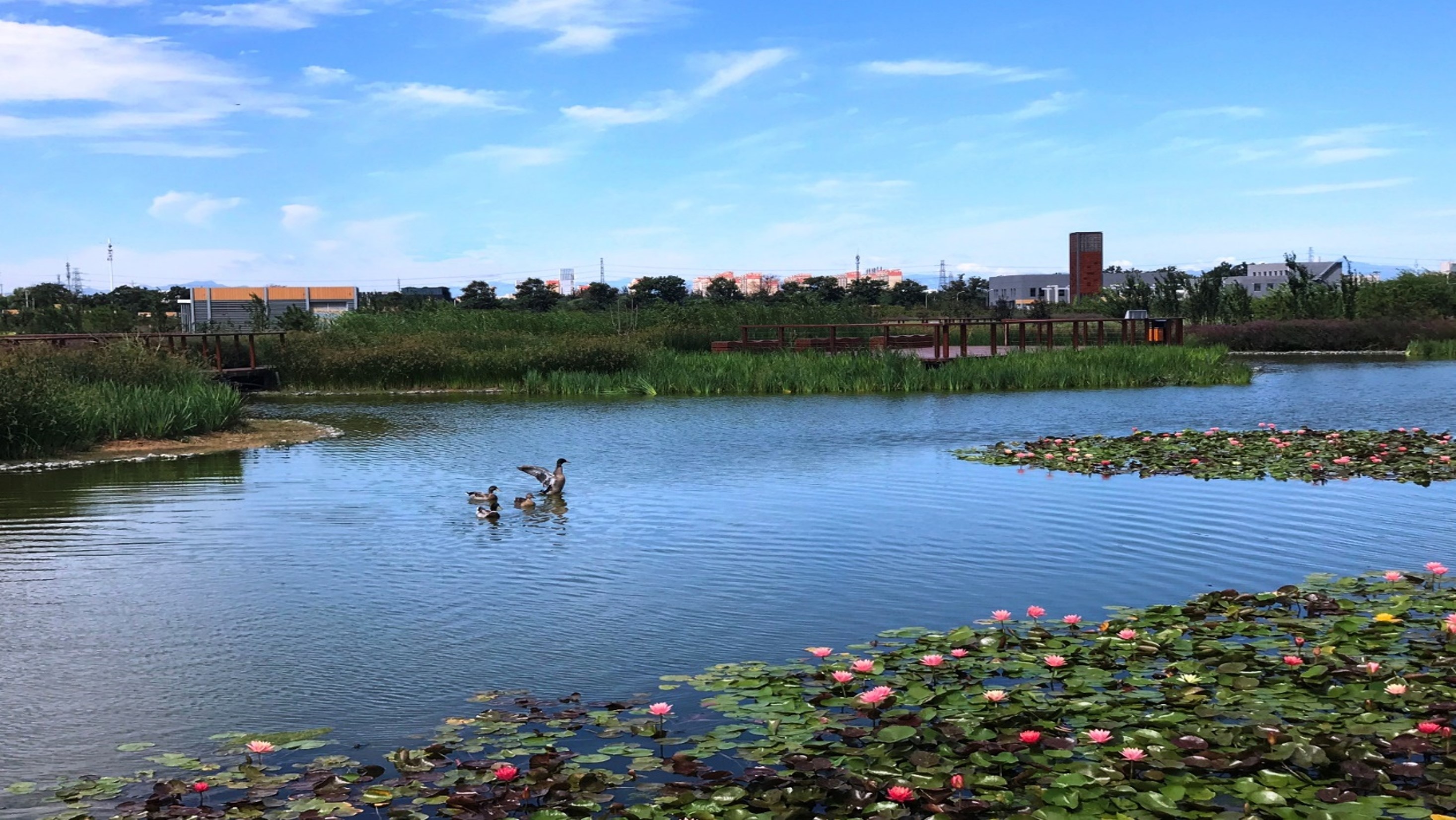 在南四环外的北京排水集团槐房再生水厂,每天有60万立方米的污水被净化处理,其总量能灌满240个标准游泳池。这座全亚洲最大的地下再生水厂将生态景观与污水处理设施融为一体,地下藏着再生水厂,地上则是270亩的湿地公园,吸引了不少野生鸟类集聚。