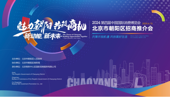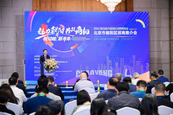 4月15日下午,在第四届中国国际消费品博览会期间,北京市朝阳区举办了以“新动能 新未来 - 魅力朝阳 共筑商机”为主题的招商推介专场活动,围绕朝阳区国际消费中心城市主承载区、自贸区及数字贸易试验区、重点商圈等发展特色优势,充分运用区、街乡现有政策体系,通过活动向前一步主动开展招商引资,服务企业,引导产业链龙头品牌企业深度了解朝阳。