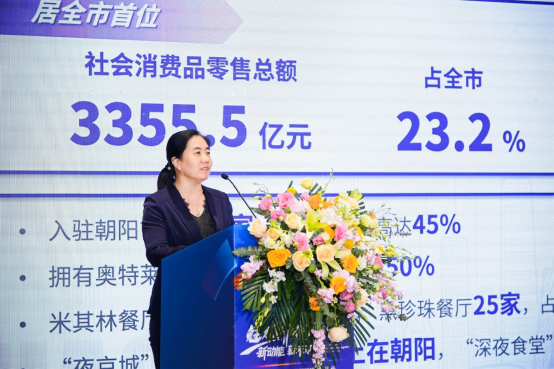 接下来,北京市朝阳区商务局副局长王仁清重点介绍了朝阳区的区域特点、消费领域支持政策及优质承载空间建设情况,她表示“朝阳区将努力为广大投资者营造更加开放、包容的投资贸易环境,更加高效、便利的政务服务环境,更具活力的创新、创业环境,更加亲和舒心的城市环境,以海纳百川的情怀竭诚为大家提供高品质服务,与各位以活动为契机,凝聚共识、深化合作、共同推动朝阳区实现新发展,再创新辉煌”。