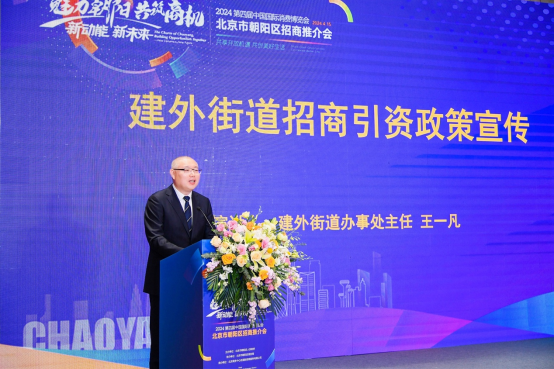 此外,北京市朝阳区三里屯街道办事处副主任卫磊、望京街道办事处主任刘丹、建外街道办事处主任王一凡、将台乡副乡长王育君分别进行招商推介,展现了各街乡重点区域的核心优势、产业资源、重点项目及发展规划。