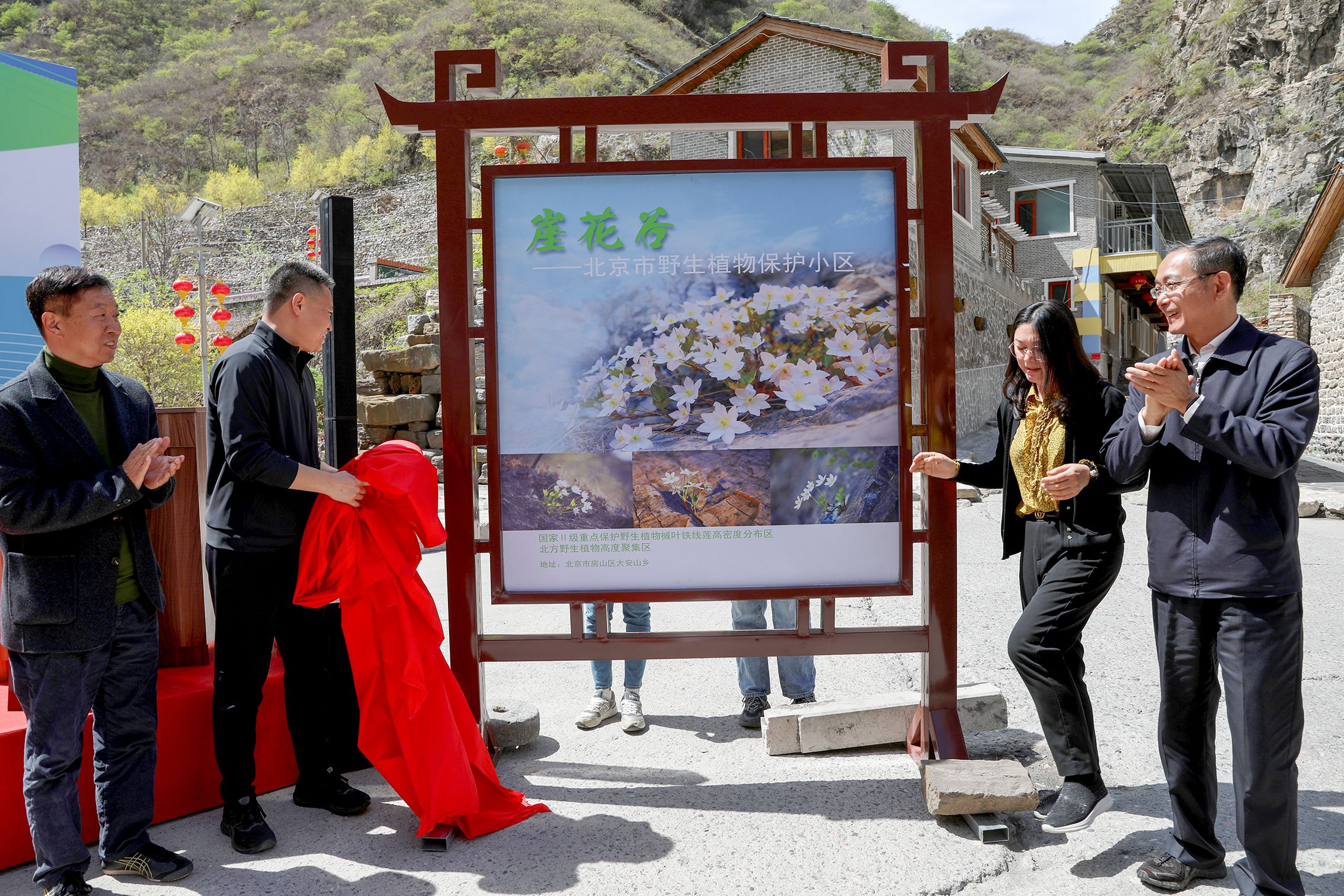 4月16日,北京市首个野生植物保护小区在房山区崖花谷揭牌。保护小区的崖壁如刀削斧剁,是国家级二级重点保护野生植物槭叶铁线莲集中分布区,在生物多样性方面也非常具有代表性。