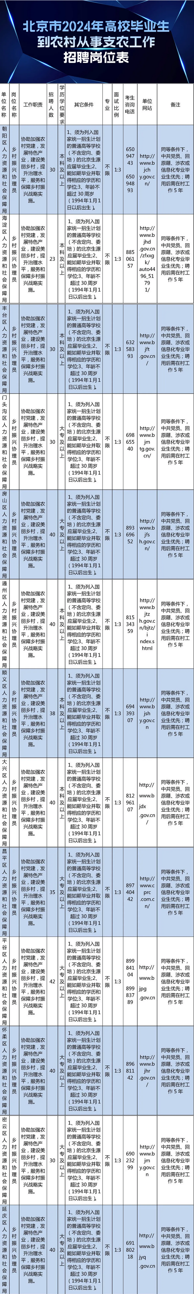 北京市2024年高校毕业生到农村从事支农工作招聘岗位表。 图/首都教育