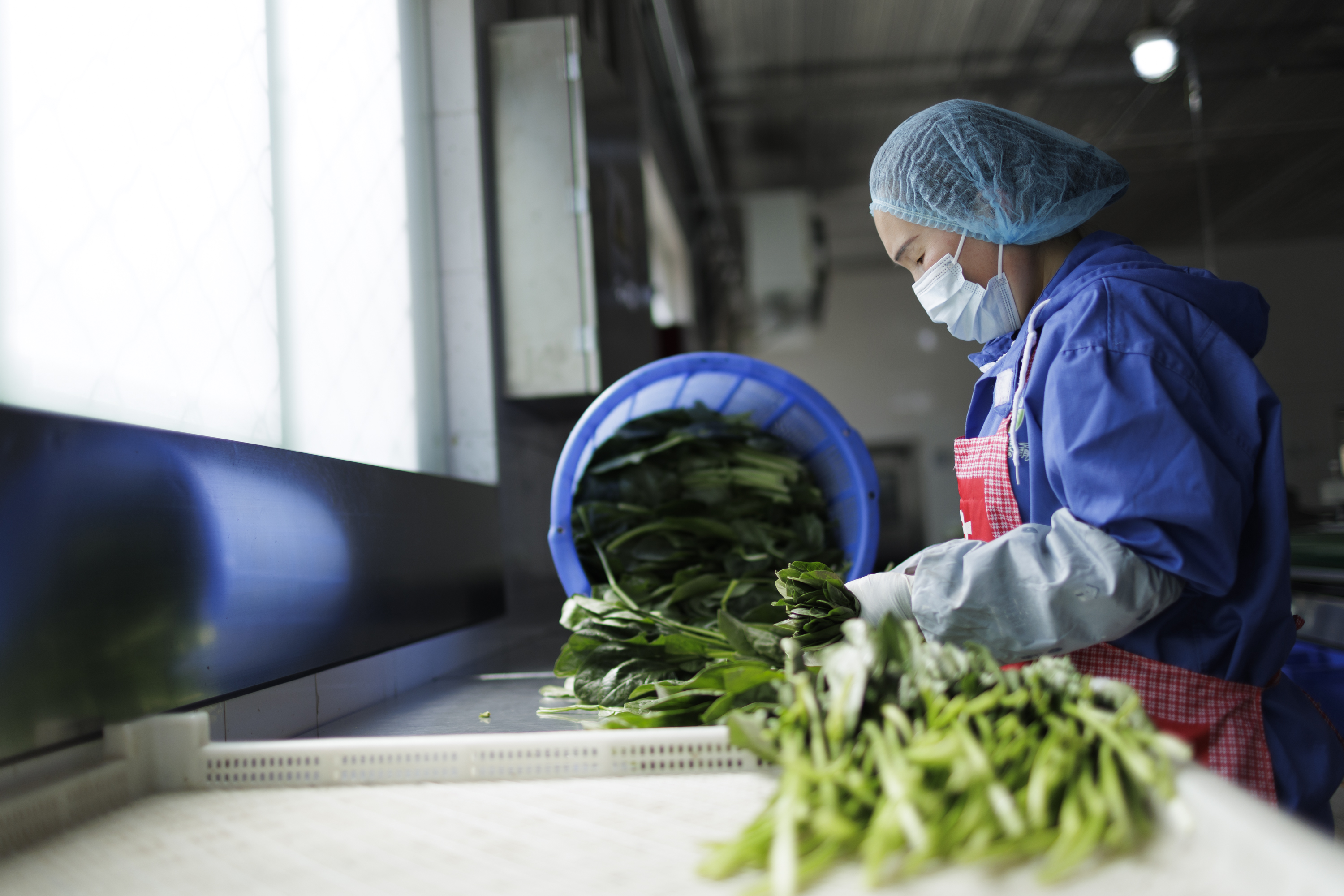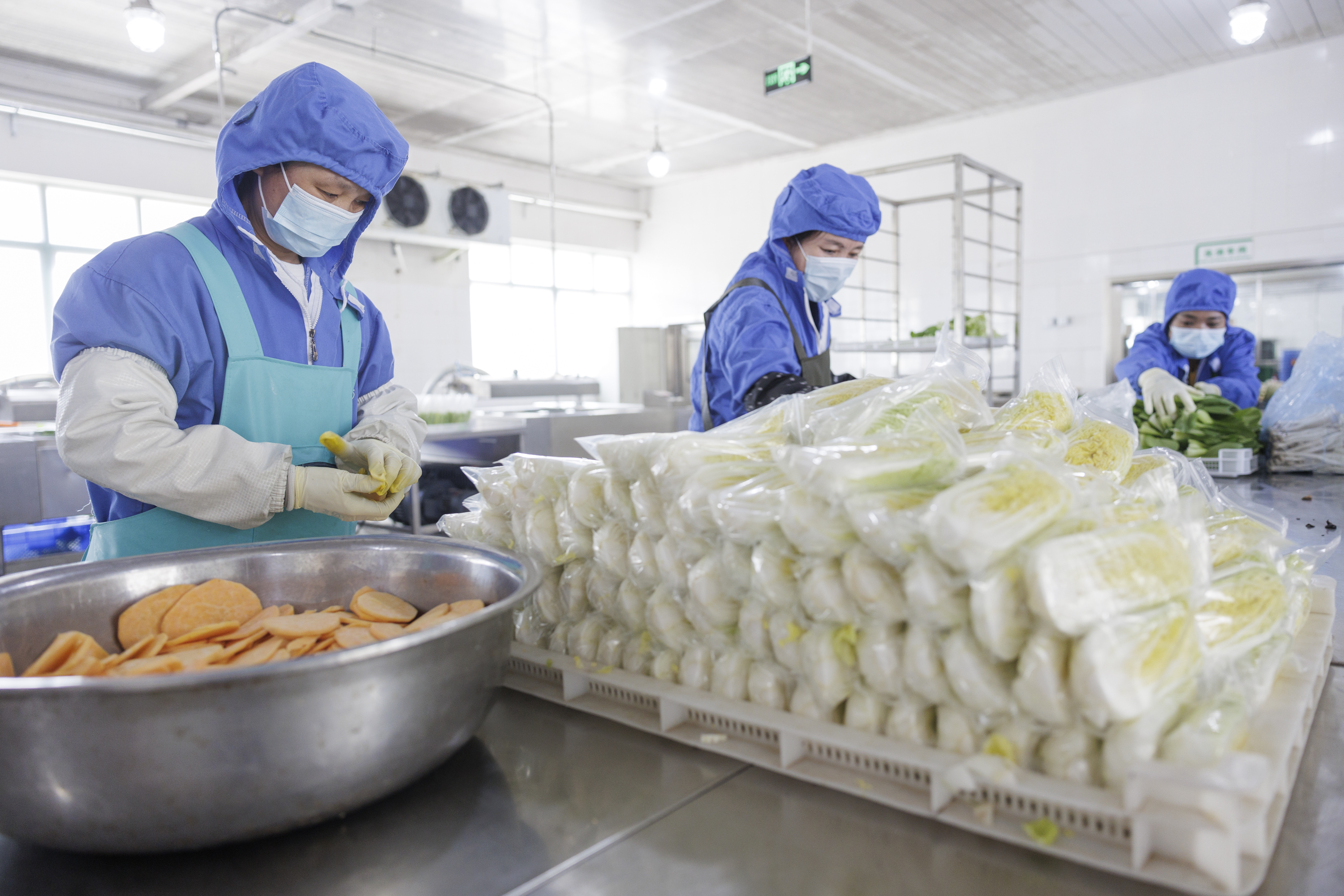 生产车间内,工人正在挑选蔬菜。新京报记者 王子诚 摄