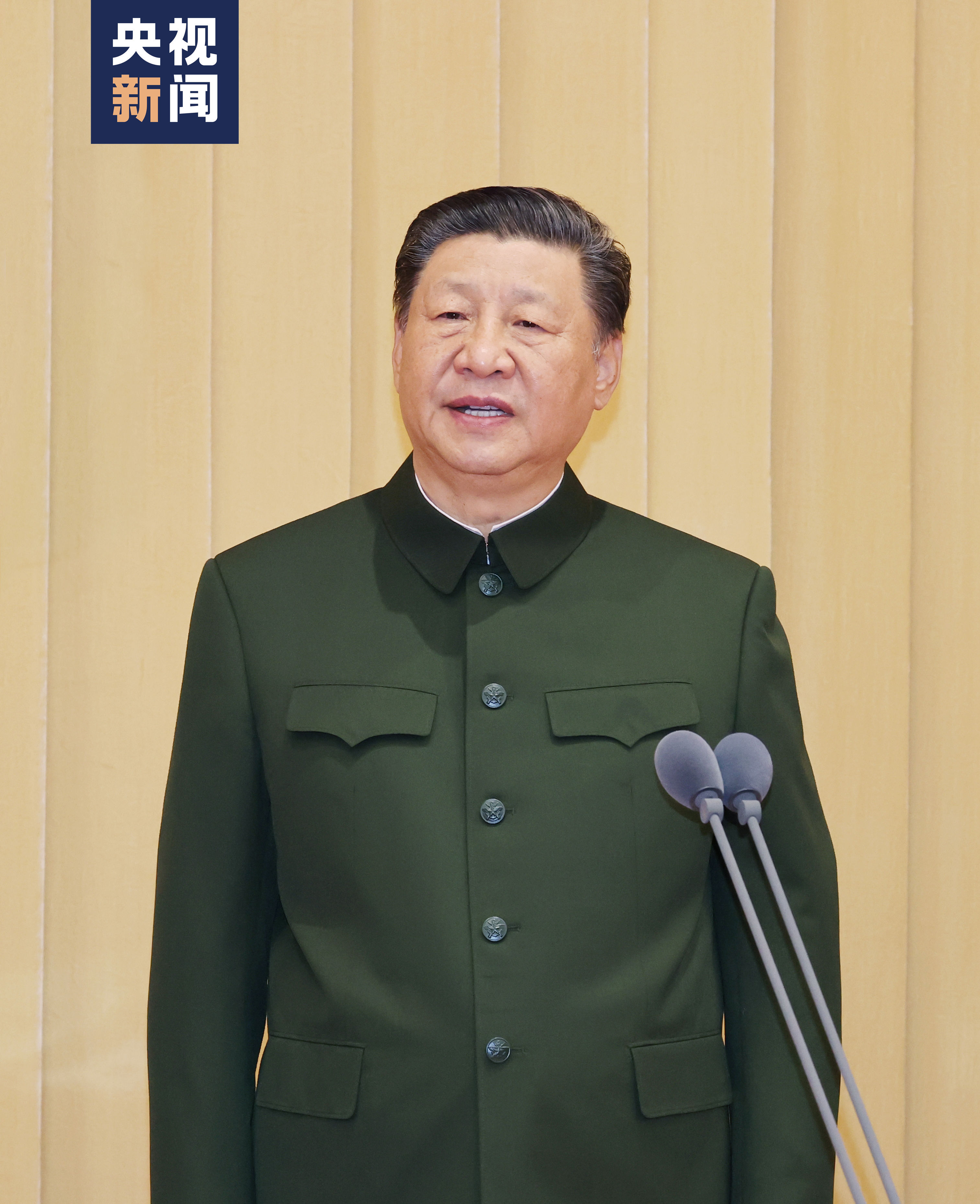 4月19日,信息支援部队成立大会在北京八一大楼隆重举行。中共中央总书记、国家主席、中央军委主席习近平向信息支援部队授予军旗并致训词。这是习近平致训词。