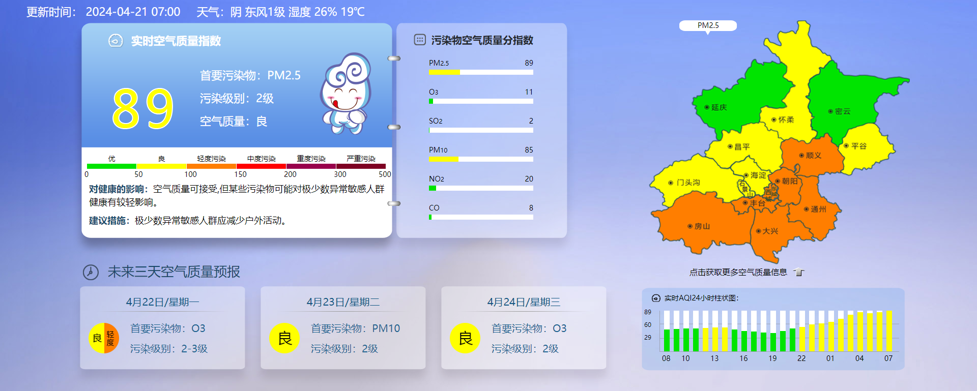 据北京市生态环境监测中心今早7时数据,目前实时空气质量指数89,污染级别2级,首要污染物PM2.5,空气质量良。
