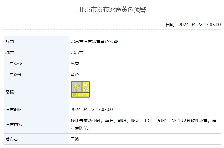 新京报讯 据北京市气象局网站消息,北京市发布冰雹黄色预警:预计未来两小时,海淀、朝阳、顺义、平谷、通州等地将出现分散性冰雹,请注意防范。